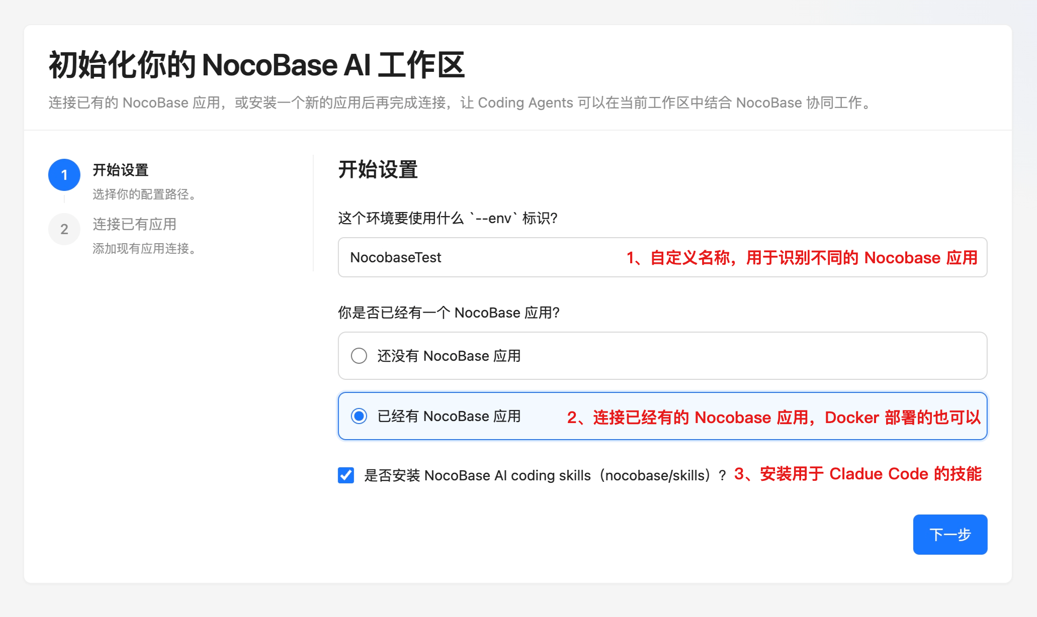 浏览器会自动打开可视化配置页面,分步引导你完成配置: