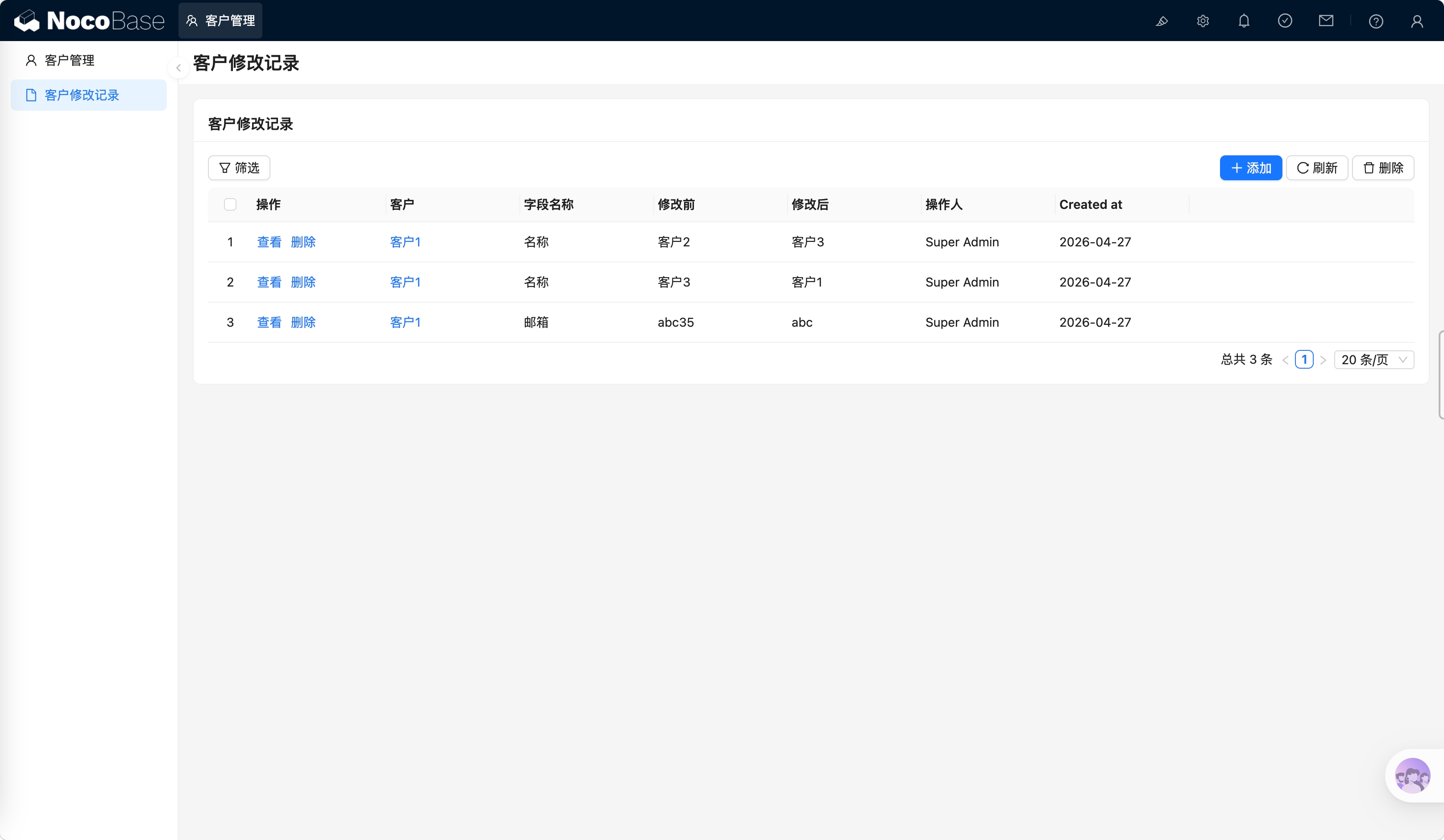 帮我创建客户修改记录功能,当客户信息修改后,新增一条客户修改记录。