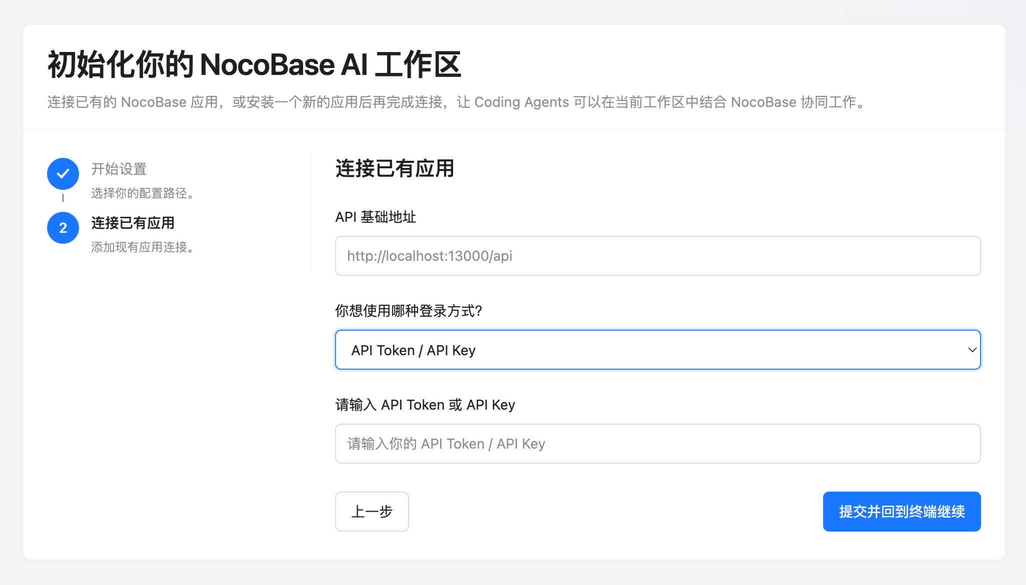 建议使用 API 密钥(API Key)进行连接。(在 Nocobase 应用的“设置 > API 密钥”创建密钥)