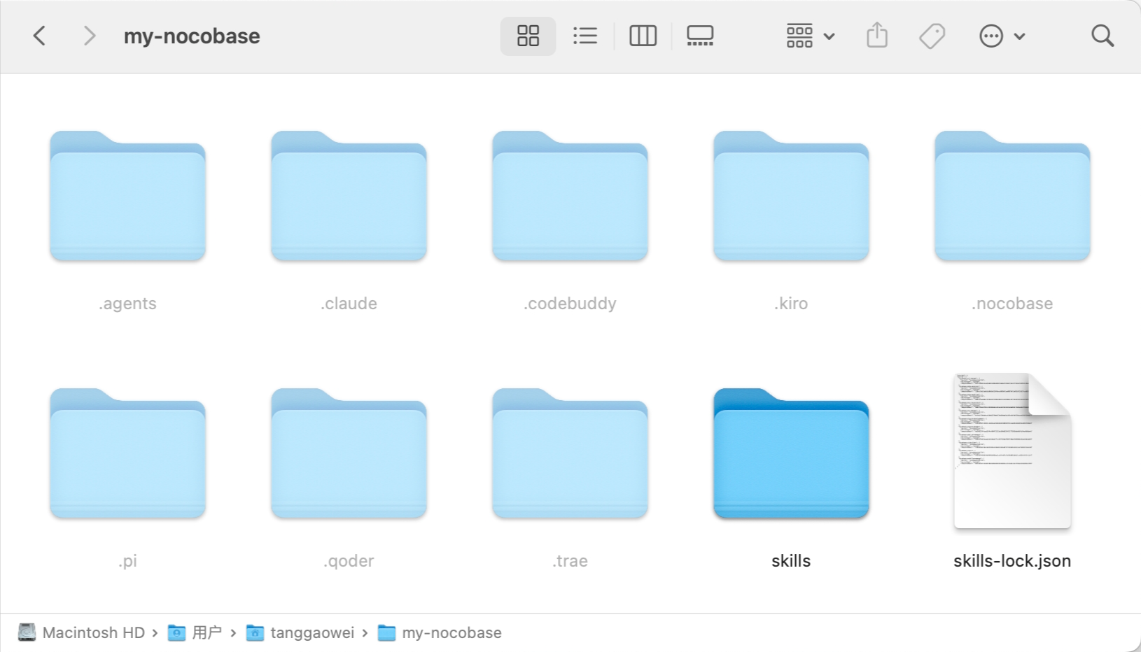 初始化成功后,工作区目录如下,已包含 .claude 目录(Claude Code 的项目级配置目录):